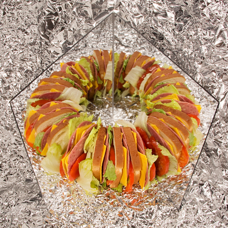 For me, LAZY MOM’s technicolor still lifes are ultimately about a certain kind of alchemy, wherein the (semi)edible trappings of domestic servitude are transformed into the makings of pure aesthetic gold. New York based Josie Keefe and Phyllis Ma are the creative team behind LAZY MOM, and they explained in an interview with Mold magazine,that the “original idea behind the character of LAZY MOM is that she is a woman fundamentally unfulfilled by contemporary motherhood.” So, instead of happily packing her children’s lunchbox, LAZY MOM seems content to contemplate the absurd pathos of a single piece of pre-sliced bread sealed in a Ziploc bag. More elaborately, she makes a “birthday cake” out of clear gelatin, inside of which swims pieces of romaine, a medallion of red onion, and a few slices American cheese, still in their wrappers. It’s really through this madcap form of art-making that LAZY MOM transcends the everyday for a moment of aesthetic pleasure that sometimes bridges to profound joy.